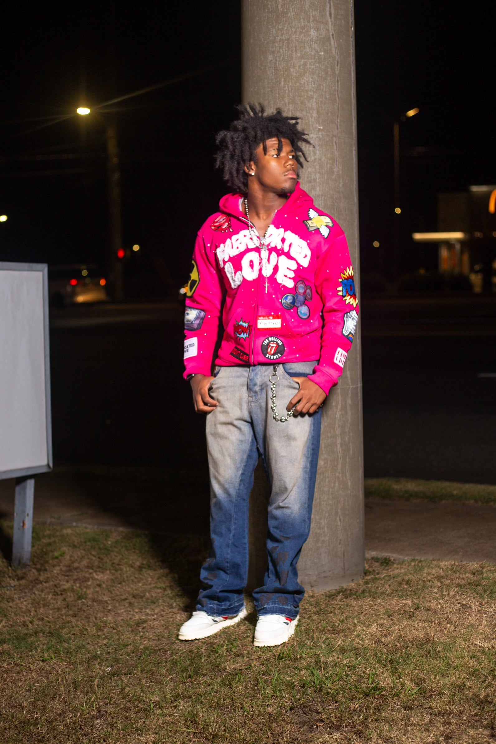 FABRICATED LOVE “I KNOW MY EX MAD AF” PINK ZIP-UP HOODIE