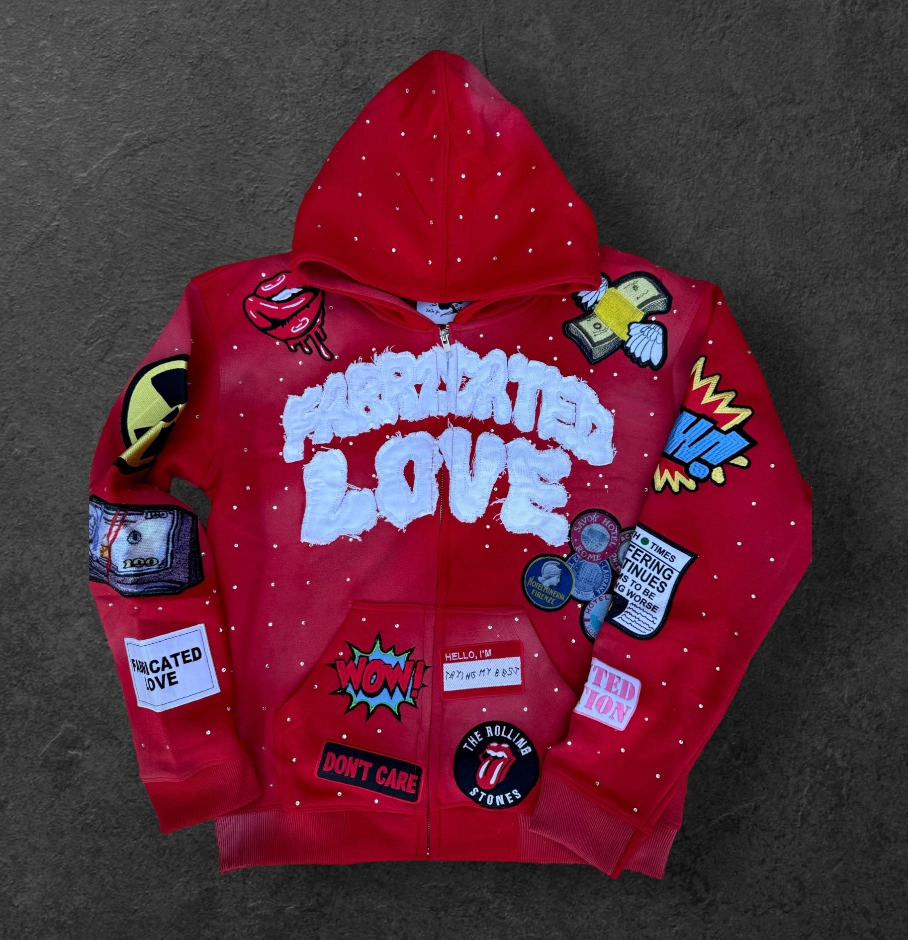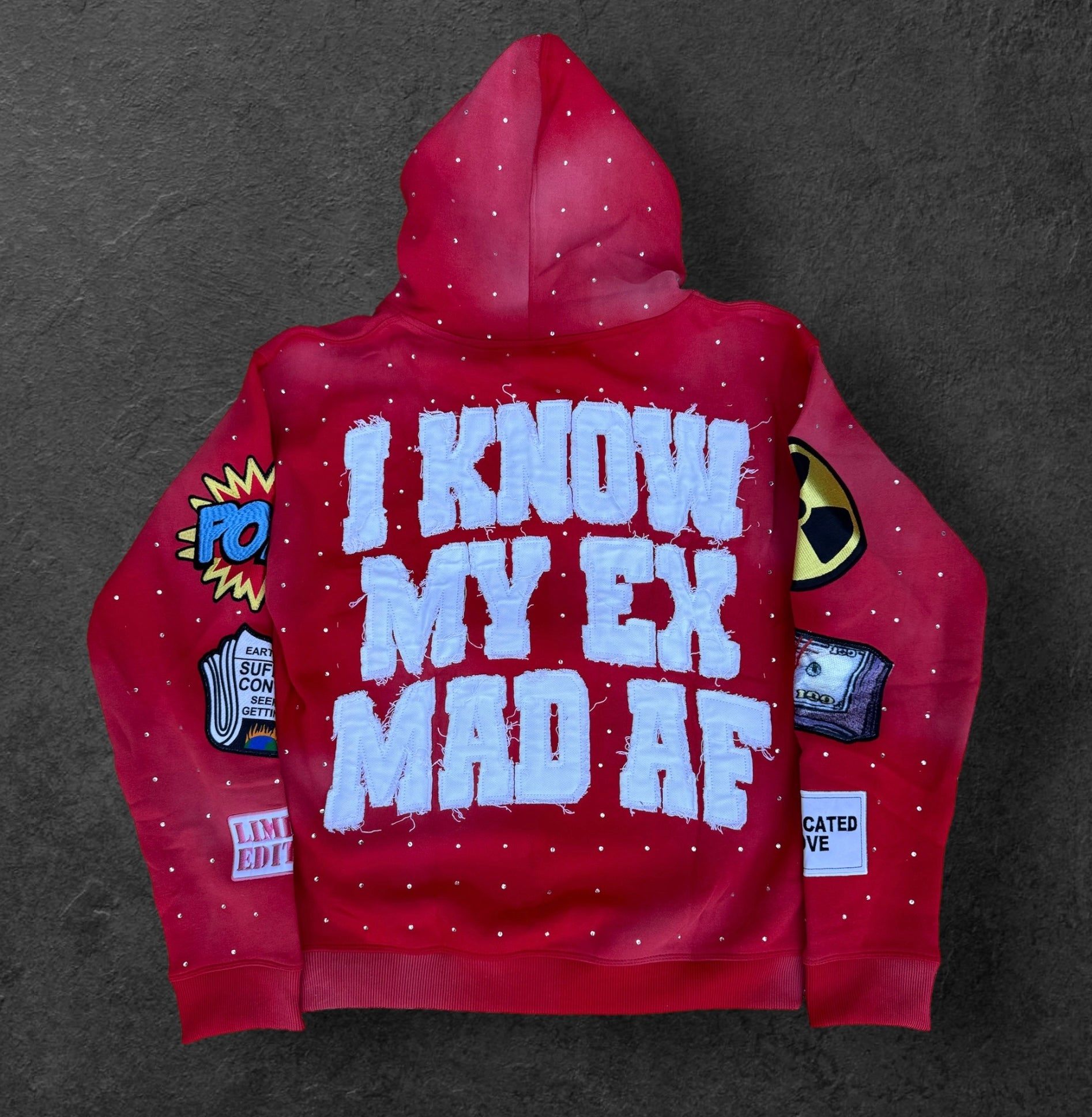 FABRICATED LOVE “I KNOW MY EX MAD AF” RED ZIP-UP HOODIE