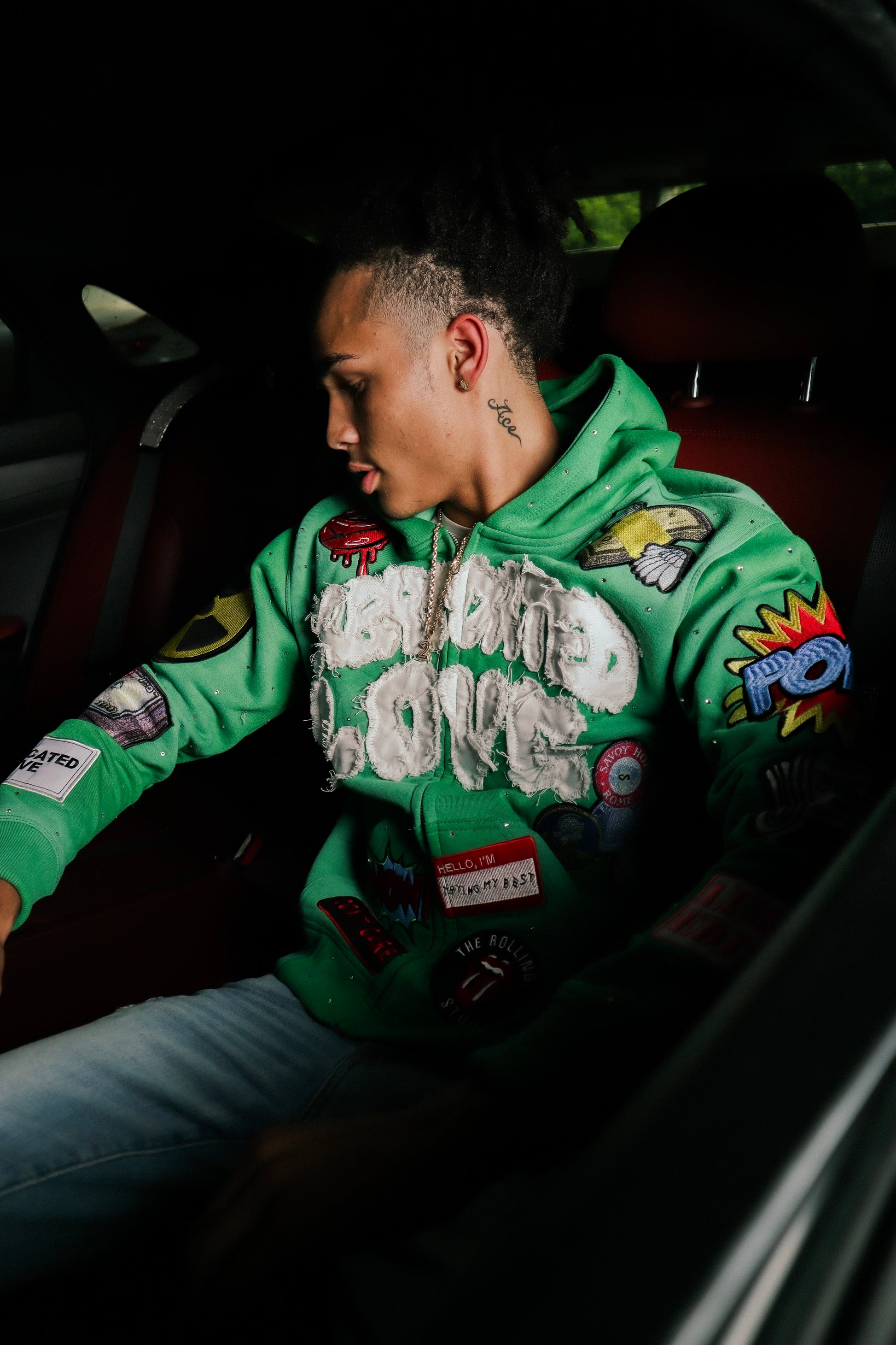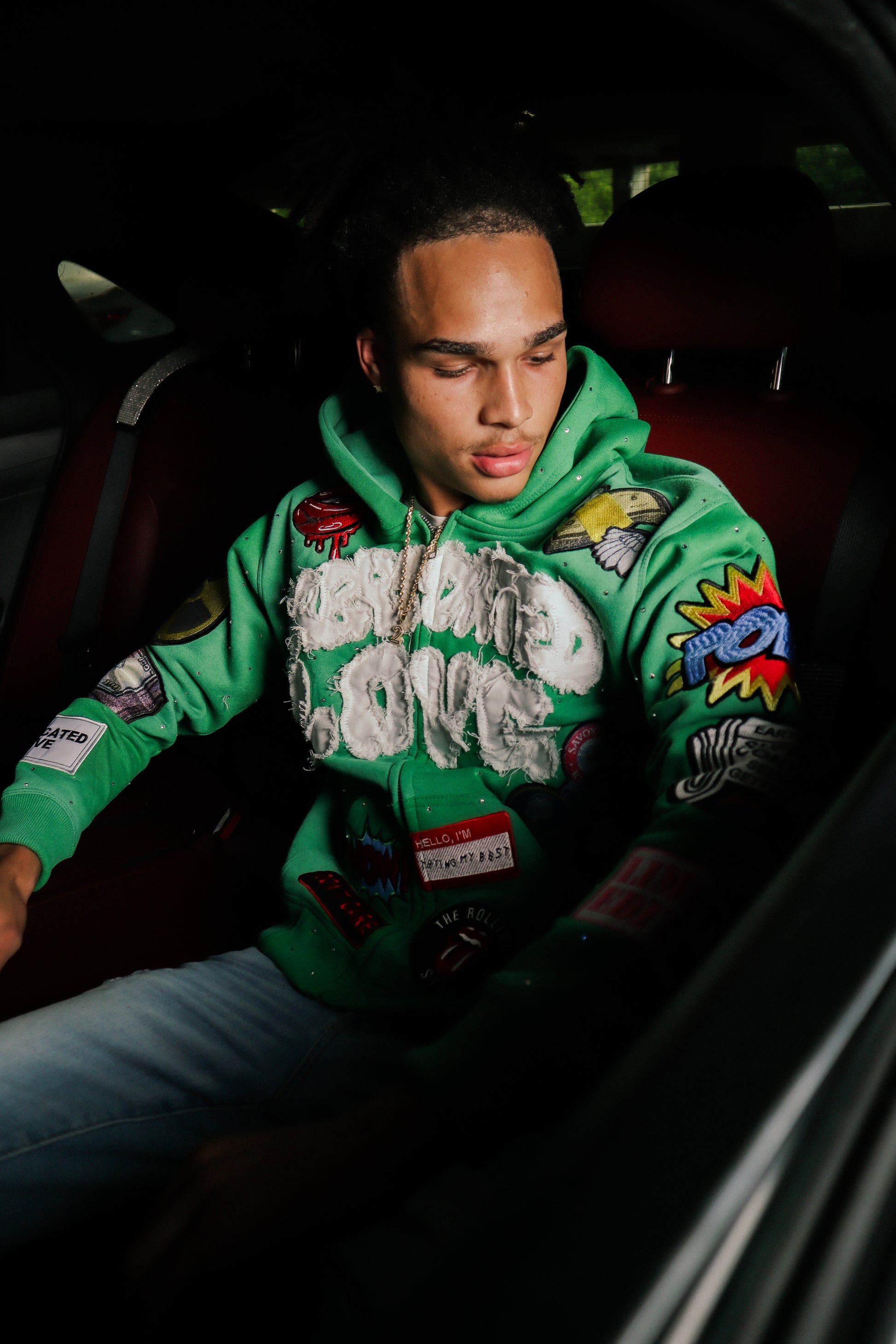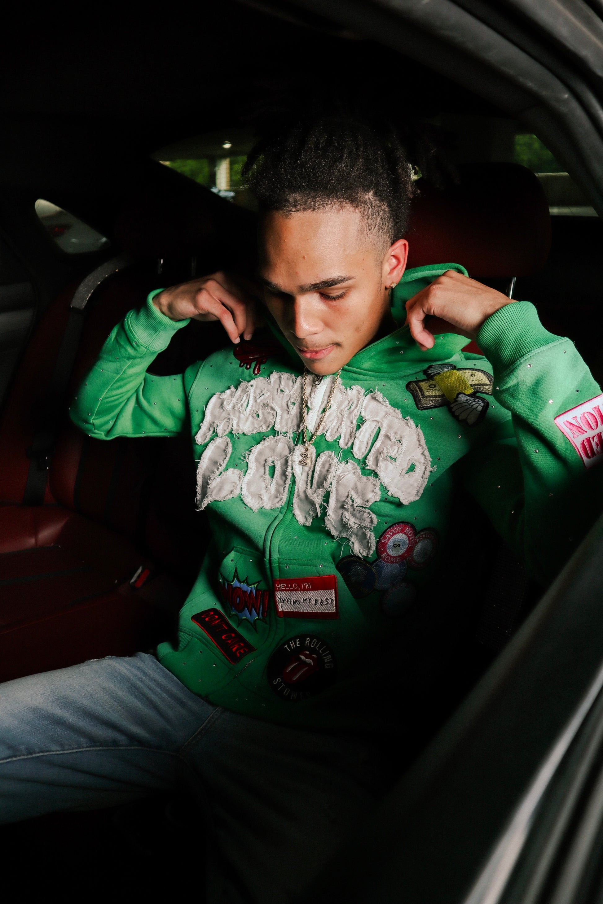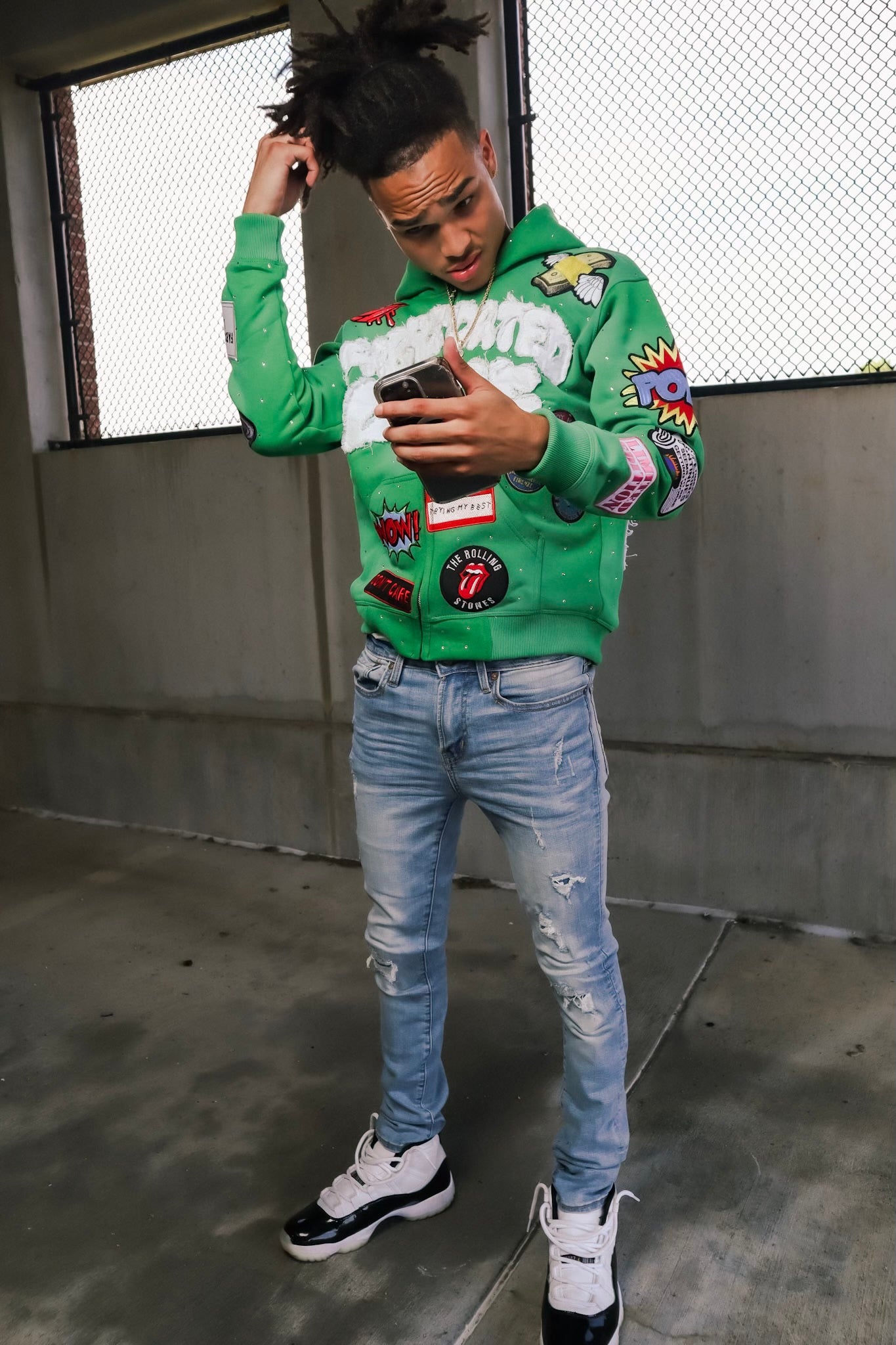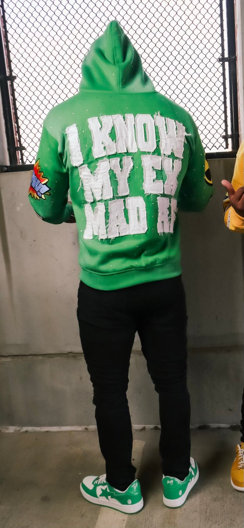 FABRICATED LOVE “I KNOW MY EX MAD AF” GREEN ZIP-UP HOODIE