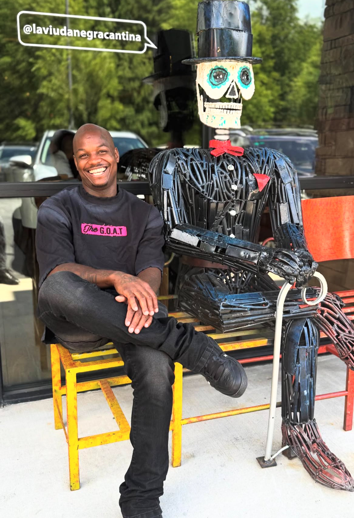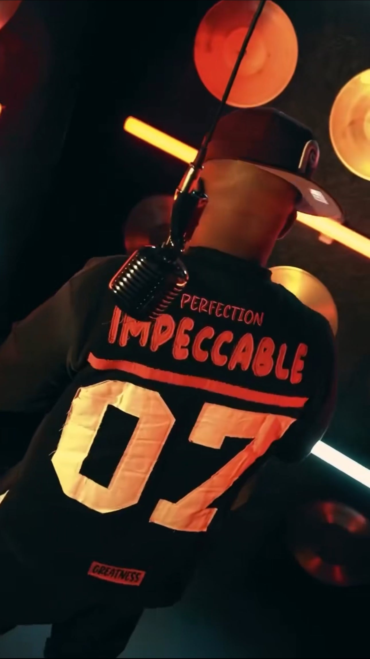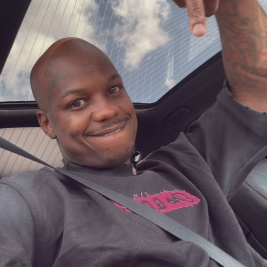 THE G.O.A.T BLACK/FUCHSIA “IMPECCABLE” EMBROIDERY PATCH DROP SHOULDER T-SHIRT
