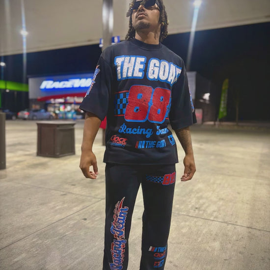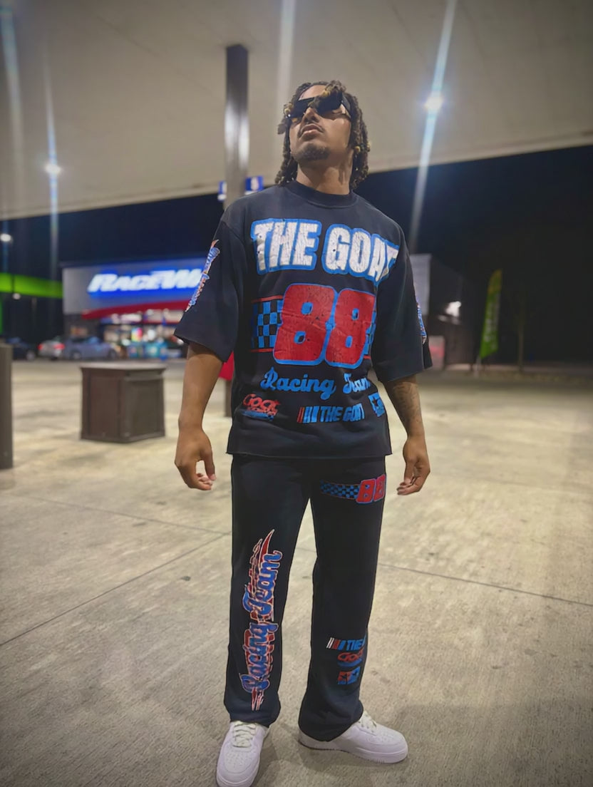 THE GOAT “NASCAR RACING TEAM”BLACE/RED/BLUE JOGGER SET.